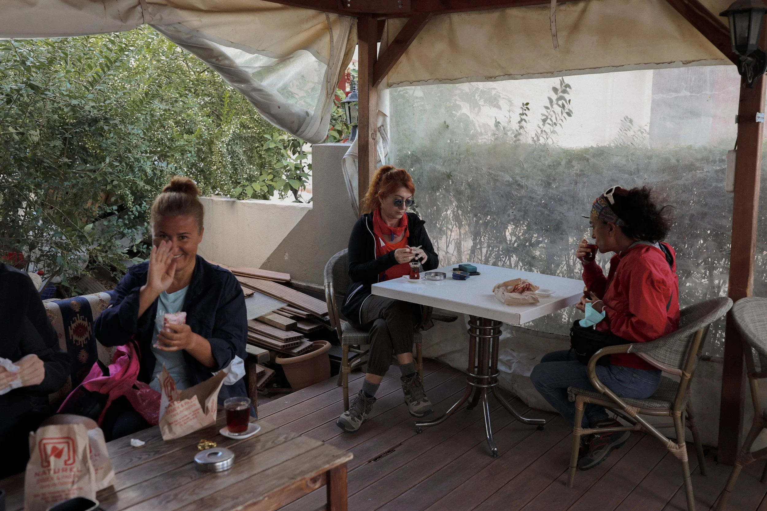 The van’s first stop was a bakery. Our group downed tea, bread, and cigarettes.